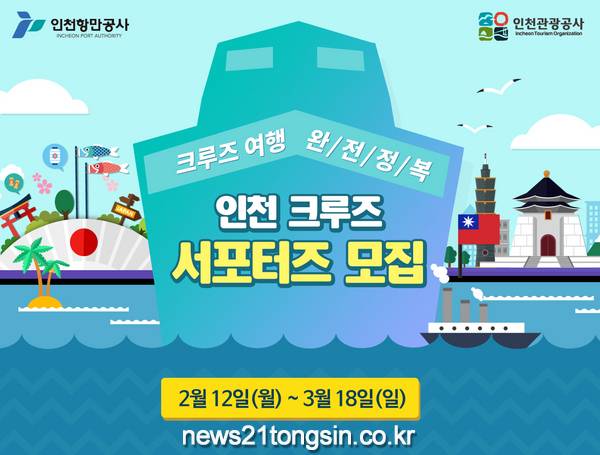 인천항만공사(사장 남봉현)와 인천관광공사(사장 채홍기)가 인천 크루즈 관광을 활성화하기 위한 방안으로 인천 크루즈 서포터즈 모집에 나섰다.