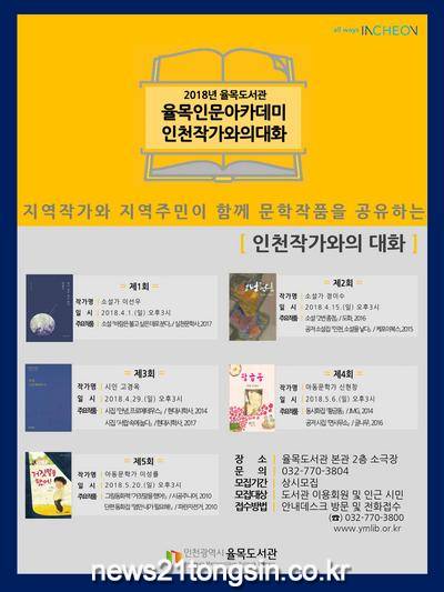 인천광역시가 설립하고 인천광역시도서관발전진흥원이 운영하는 율목도서관(관장 나병준)이 지역사회와 함께하는 도서관상 정립을 위하여 ‘율목 인문아카데미-인천 작가와의 대화’를 새롭게 선보인다.