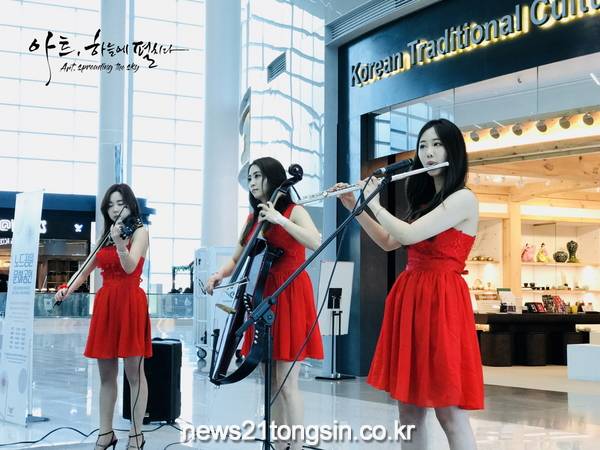 이번 공연은 인천공항 제2여객터미널(T2)을 통해 출국하는 국내외 여행객과 상주직원을 위한 것으로, '오드아이', '가야금 앙상블 수' 등 국내 정상급 화려한 퍼포먼스의 전자현악 팀과 아름다운 선율의 가야금 앙상블이 참여해 봄을 맞이하는 특별한 예술공연을 펼칠 예정이다.