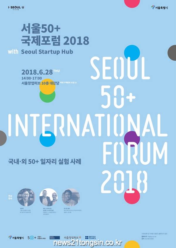 (뉴스21통신)박신태본부장= 저출산·고령화로 인한 본격적인 생산가능인구의 감소. 위기 돌파구를 중장년층에게서 찾는다. 서울시50플러스재단(대표이사 이경희)은 오는 28일(목) ‘국내외 50+일자리 실험사례’를 주제로 ‘서울50+국제포럼 2018(Seoul50+International Forum2018)’을 개최한다.