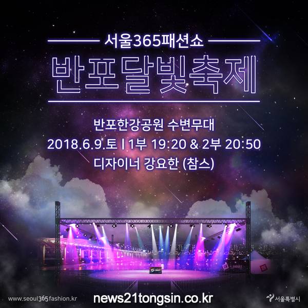 서울시는 6월 9일(토) 저녁 7시 20분과 8시50분, 반포 한강공원 달빛 무지개분수를 배경으로 ‘서울 365-반포 달빛축제 패션쇼’가 펼쳐진다고 밝혔다.