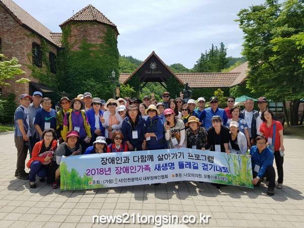 인천 내부장애인협회에서는 제이든가든 수목원에 둘레길 걷기대회 야유회를 갖고 기념촬영을 하였다.