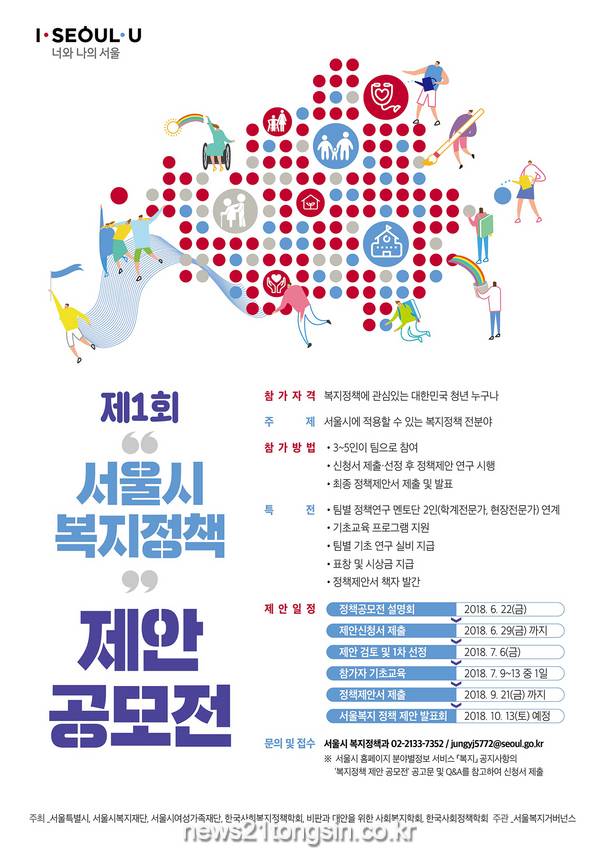 (뉴스21통신/서울서부취재본부)= 서울시가 소통하는 미래복지 정책 아이디어를 발굴하고 정책반영을 위한 ‘제1회「서울시 복지정책」제안 공모전’을 개최한다.