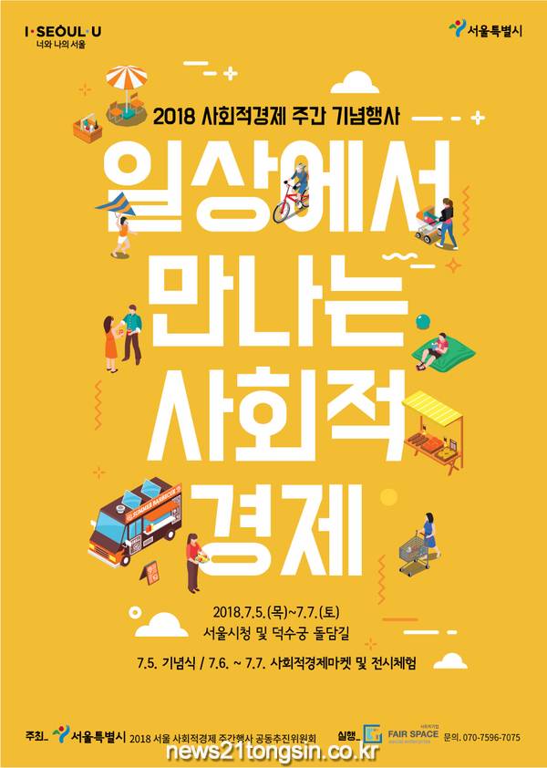 (뉴스21통신/서울서부취재본부)= 서울시는 7월 5일(목)~7월 7일(토)까지 사흘간 서울시청과 덕수궁돌담길에서「2018 사회적경제 주간기념 행사」를 개최한다고 밝혔다.