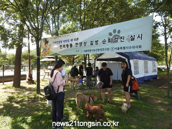 (뉴스21통신/서울서부취재본부)= 서울시보건환경연구원은 7월부터 10월까지 3개월간 (사)서울시수의사회와 함께 ‘찾아가는 반려동물 이동 검진 센터’를 월드컵공원, 보라매공원, 어린이대공원 반려견 놀이터 옆 잔디밭 및 관악구 지역 축제에서 총 11회 운영한다.