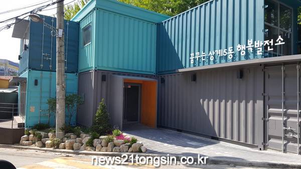 한편 꿈꾸는 상계5동 행복발전소는 2014년 대한민국 신진건축사 최우수상 수상자인 노영자 건축사가 설계했다. 폐형광등 집하장 내 모서리 부지를 활용해 청록색의 산뜻한 컨테이너 외관과 고급스러운 목재 내장을 사용해 기존 공공건축물의 딱딱한 이미지를 탈피했다는 평이다.