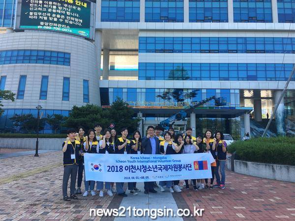 이천시(시장 엄태준)는 1일부터 9일까지(7박 9일)몽골 울란바토르와 에르덴 지역에 청소년 국제자원봉사단 14명을 파견해 봉사활동을 펼치고 있다.
