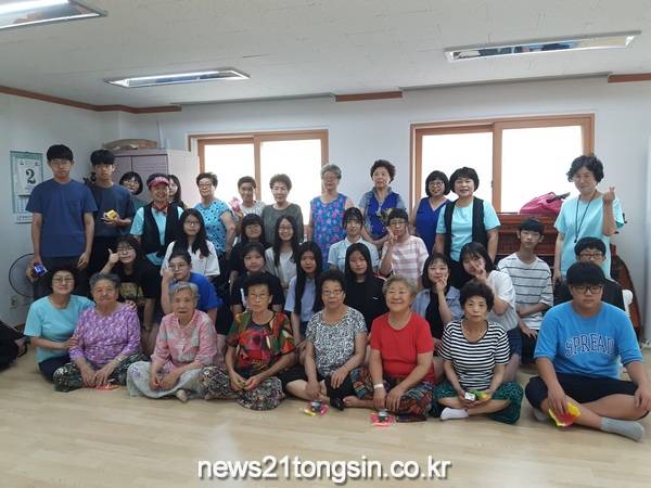 경로당 어르신들은 학생들이 더운 날 찾아와 준 것도 고마운데 직접 뜬 수세미까지 전달한 것에 고마움을 전했다.