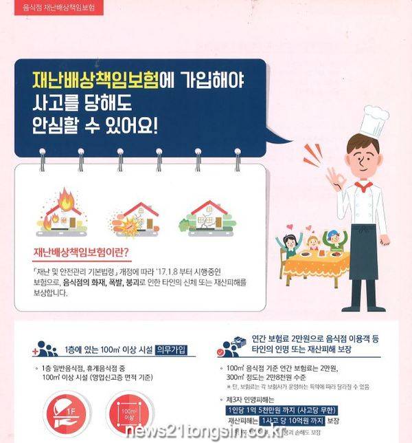마포구(구청장 유동균)는 1층에 소재하며 영업장 면적이 100㎡ 이상인 음식점과 숙박업소의 재난배상책임보험 의무가입 기한이 오는 8월말까지라고 전했다.