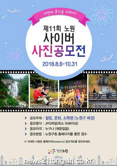 서울 노원구(구청장 오승록)는 힐링도시 노원을 널리 알리고 구민의 구정참여를 활성화하기 위해 ‘제11회 사이버 사진 공모전’을 연다고 밝혔다.