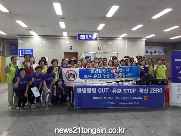 인천광역시(시장 박남춘)는 8월 8일 인천항 연안여객터미널에서 민·관·경 합동으로 화장실내 불법촬영 카메라 일제 점검 및 캠페인을 실시했다.