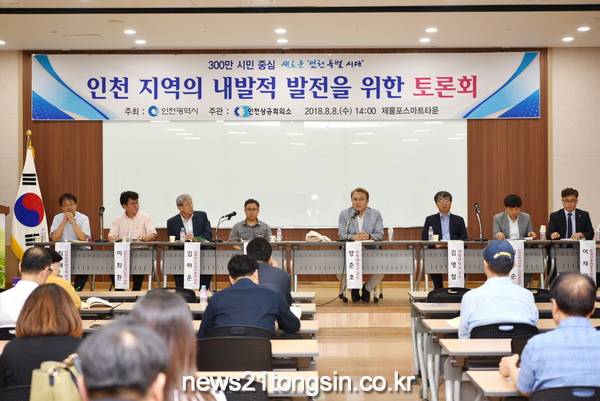 인천시(시장 박남춘)와 인천상공회의소(회장 이강신)는 8일 오후 2시 제물포스마트타운(JST) 대회의실에서 ‘내발적 발전방안 토론회’를 개최했다.