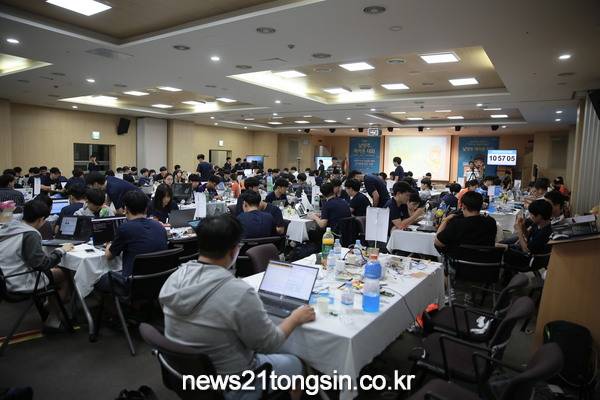 한편, 해커톤은 해킹(Hacking)과 마라톤(Marathon)의 합성어로 마라톤을 하듯이 42.195시간 내외의 짧은 시간동안 쉬지 않고 아이디어와 생각을 기획, 프로그래밍 과정을 거쳐 시제품의 결과물을 만들어내는 협업프로젝트를 말한다.