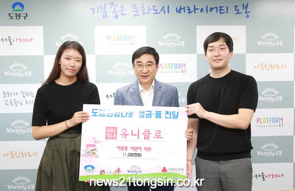 ▲ (사진)유니클로 도봉구 희망나눔 성품 전달식도봉구(구청장 이동진)에서는 8월 17일 구청 소통협력실에서 ‘글로벌 패션브랜드 유니클로의 어린이 의류 후원 전달식’이 진행됐다.
