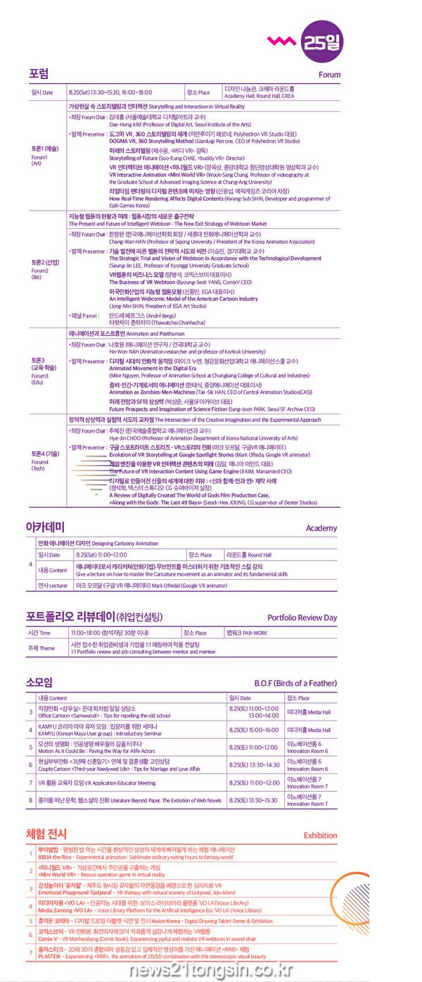 이번 포럼은 기조강연, 토론, 아카데미, 작품컨설팅 등으로 구성되며 만화·웹툰,애니메이션 등 상상산업 분야의 산업적·예술적·기술적 측면을 모두 아우르는 만남의 장이기도 하다.