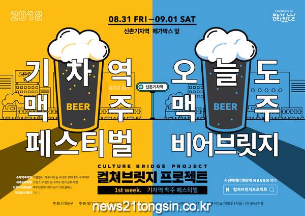 서대문구가 ‘컬쳐브릿지 프로젝트’의 첫 행사인 ‘기차역 맥주 페스티벌’을 8월 31일과 9월 1일 이틀간 오후 2시부터 9시까지 경의중앙선 신촌역 광장에서 개최한다.