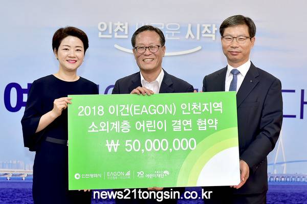 17일 인천시청에서는 인천시와 종합건축자재기업 이건(EAGON)산업이 인천지역 저소득층 어린이들을 위한 사회공헌 협약을 맺었다.