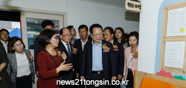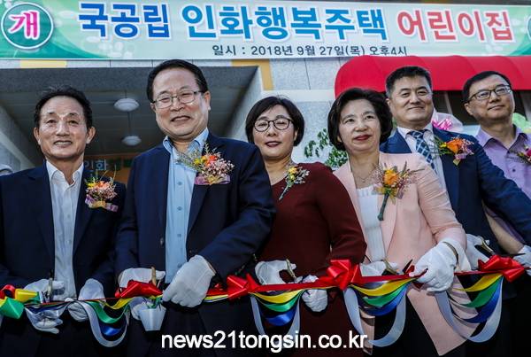 (전북/뉴스21)송태규기자= 익산시(시장 정헌율)는 27일 인화행복주택(익산시 목천로 318)에서 부모가 믿고 맡길 수 있는 공공보육 인프라 확대를 위한 국공립 어린이집 개소식을 개최했다. 이날 개소식은 개원 후 2달간의 안정적인 운영을 통해 국공립 어린이집 확충 사업의 성공적인 시작을 알린 인화행복주택 어린이집(원장 송미경)을 축하하기 위한 자리로, 정헌율 익산시장과 엄창용 어린이집 연합회장 및 재원생과 학부모, 입주민 등 시민 50여 명이 참석한 가운데 진행됐다.