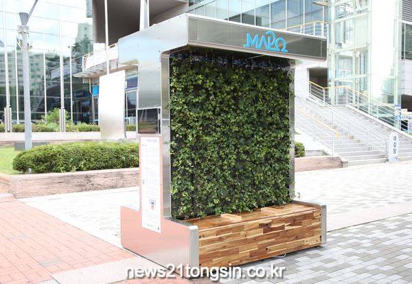 최근 마포구청 광장에 설치된 미세먼지 저감 벤치는 외부 미세먼지를 흡수해 깨끗한 공기로 정화한 후 다시 외부로 내보내는 방식의 벤치형 휴식공간이다.
