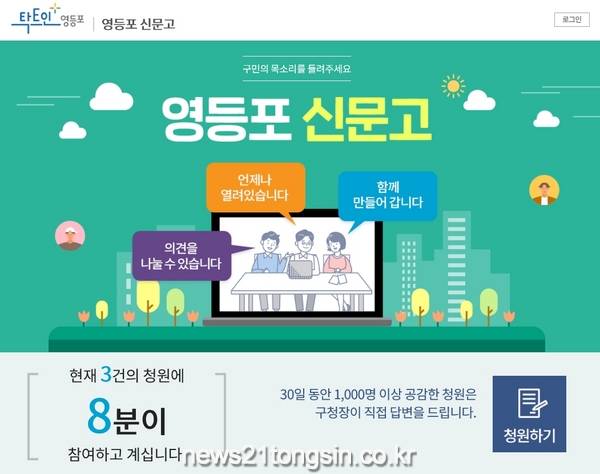 영등포구가 10월 1일부터 청와대 국민청원을 벤치마킹 한 온라인 청원창구 ‘영등포 신문고’를 운영한다고 밝혔다.