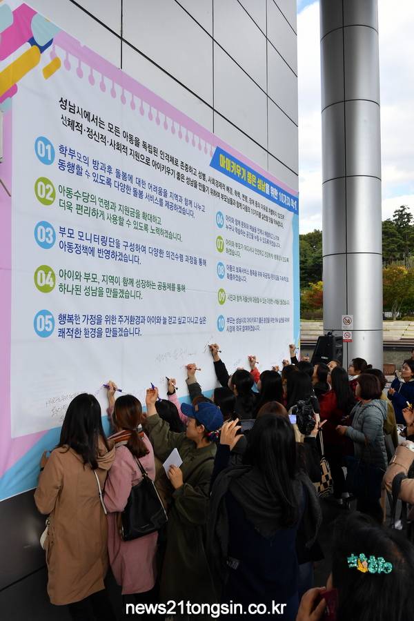 은수미 성남시장은 참석 부모들과 함께 이 같은 내용이 담긴 대형 협약서에 공동 서명했다.