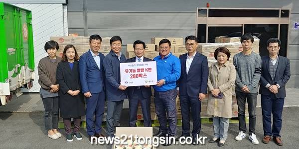 용문면 화전리 소재 본사 물류창고에서 이근형 양평군노인복지관장, 강동연 양평군종합사회복지관장, 임청우 희망나누미회장, 양평군청 관계자 등 10여명이 참석했다.