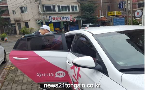 이전에 동주민센터에서는 방문복지 전용차량이 없어 담당자가 도보, 행정트럭, 개인차량, 대중교통을 이용하여 복지대상자들에 대한 방문서비스를 실시했다.