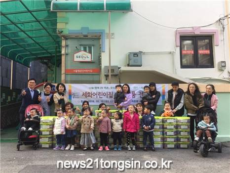 지난 10일, 은평구 역촌동 소재 세화어린이집은 관내에 생활고를 겪고 있는 복지사각지대 가구 및 사회 취약계층과 나눌 수 있는 생필품 등이 담긴 상자를 역촌동 주민센터에 기부했다.