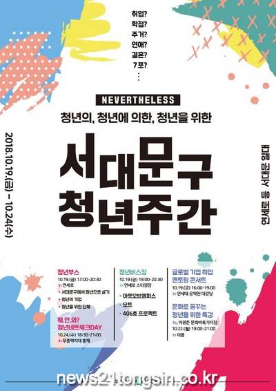 서대문구가 청년들의 고민을 나누고 취업과 주거 정보 등을 제공할 ‘청년주간행사’를 ‘그럼에도 불구하고’란 주제로 10월 19∼24일 개최한다. 이번 행사는 지난해 ‘서대문구 청년정책네트워크’ 참가자들의 정책 제안에 따라 올해 처음 마련된다.