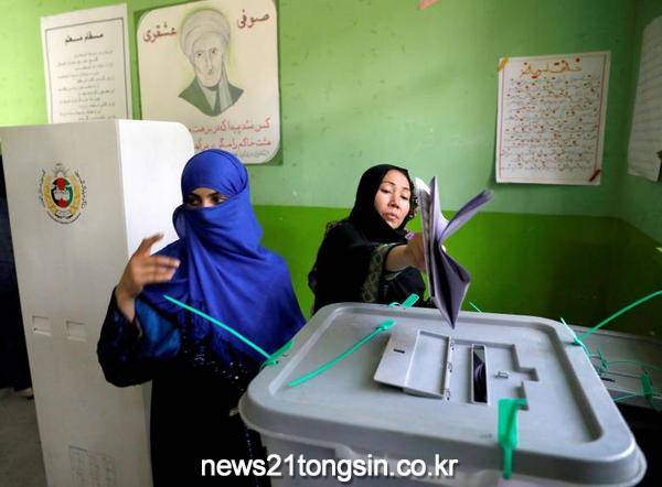 테러 위협 속에 아프가니스탄이 8년만에 치른 첫 총선투표를 21일(현지시간) 마무리했다. 사진은 20일 아프간 수도 카불의 한 투표소에서 여성들이 투표하는 모습.