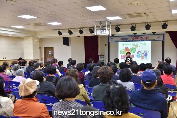 이날 강좌에서는 주민 100여 명을 대상으로 송문주 대전시민대학교수가 ‘웃음이 넘치는 건강한 가정만들기’를 주제로 일상 속에서 스트레스를 해소하는 방법 등을 강의했다.