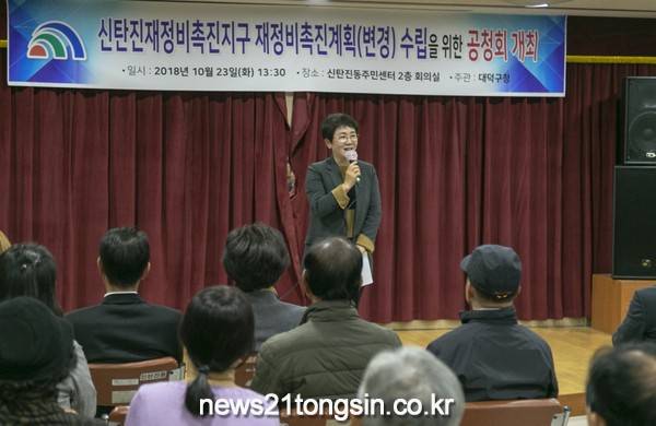 [대전=뉴스21통신] 나자용 기자 = 대전 대덕구(구청장 박정현)가 지난 23일 신탄진동행정복지센터 대강당에서 전문가와 지역주민들이 참석한 가운데 신탄진재정비 촉진지구 재정비촉진계획 변경안에 대한 공청회를 열었다.