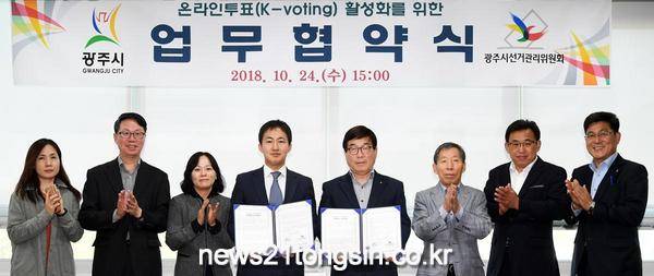 광주시는 24일 광주시선거관리위원회와 시청 영상회의실에서 온라인투표(K-voting) 활성화를 위한 업무 협약을 체결했다.