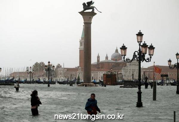 지난 주말부터 이어진 폭우와 강풍으로 이탈리아 전역이 '물폭탄'을 맞고 있는 가운데 베니치아에서는 10년 만에 범람 수위가 최대 수준으로 높아지며 도시 전체의 75%가 물에 잠겼다.