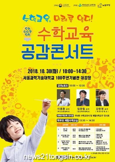 콘서트는 △체험·탐구 중심 수학교육을 주제로 부산교육대학교 이동환 교수의 강연, △미래사회와 교육의 변화를 주제로 성신여자대학교 임완철 교수의 강연, △그리고 목원대학교 강현영 교수를 비롯한 전문 패널과 이야기하는 시간으로 구성했다.