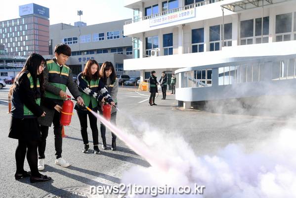 소방훈련 뒤에는 훈련을 함께한 부사119안전센터 구급대원의 화재 대응과 자위소방대 임무 안내 교육도 함께 열려 소방안전 의식을 다 시 한번 일깨우는 계기가 됐다.