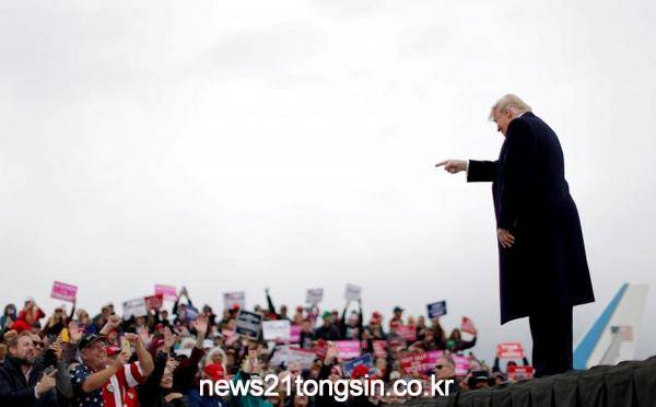 미국 중간선거(6일 현지시간)가 다가오는 가운데 도널드 트럼프 미국 대통령이 3일 몬태나주 보즈먼옐로스톤국제공항에서 매트 로젠데일 공화당 후보의 지지 유세에 나섰다.