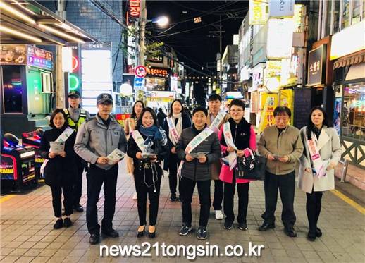 연신내지구대에 모여, 준비한 어깨띠를 두르고 홍보자료(리플릿)를 지참 하여 시작한 이날 캠페인은 청소년들이 자주 모이는 연신내 전철역 주변상가 등을 거쳐 물빛공원까지 순찰하는 경로로 진행했다.