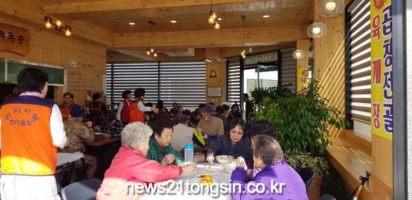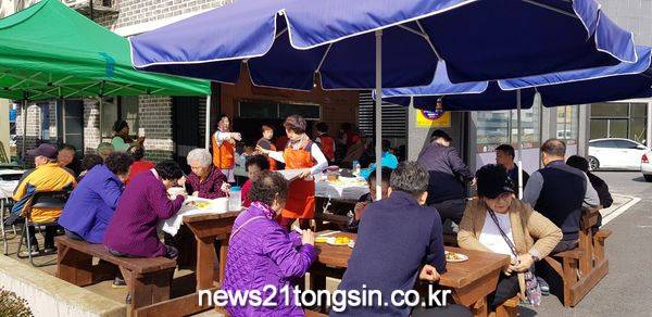 [대전=뉴스21통신] 나장용 기자 = 대전 서구 관저 2동 소재 시골막국수(대표 이기홍)는 관저사랑한마음회(회장 김 금옥) 자원봉사자와 함께 관내 경로당 회원 및 어르신 300여 명을 모시고 5일 국수 봉사활동을 했다.