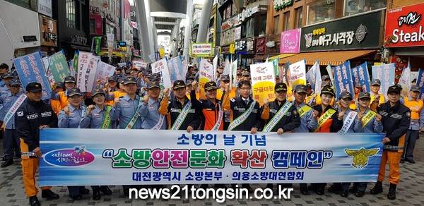 뉴스21통신] 이영남 기자 = 대전시소방본부는 5일 오후 2시 중구 으능정이 거리에서 대국민 소방안전문화 확산을 위한 전국 횡단 릴레이 캠페인을 개최했다.