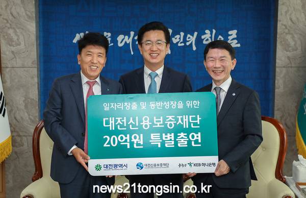 뉴스21통신] 이영남 기자 = 대전시는 5일 오전 KEB하나은행, 대전신용보증재단과‘대전광역시 중소기업․소상공인을 위한 일자리창출 및 경영안정 금융지원 업무협약’을 체결했다.