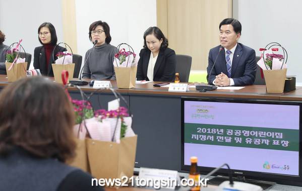 이날 구는 올해 새롭게 선정된 천동 소재의 아이맘 어린이집과 성남동 소재의 스마트뷰 어린이집 등 2곳에 지정서와 현판을 전달했다.