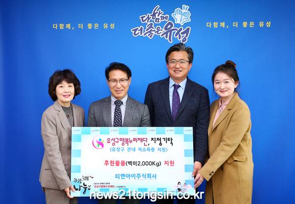 [대전=뉴스21통신] 나장용 기자 = 대전 유성구(구청장 정용래)는 10월 30일 구청 행복사랑방에서 티앤아이(주)(대표 오병도)로부터 유성구행복누리재단을 통해 백미 20kg 100포를 기탁 받았다고 밝혔다.