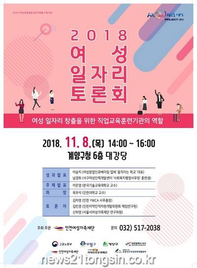 인천여성가족재단은 오는 8일 계양구청 대강당에서 『2018 여성 일자리 토론회』를 개최한다.
