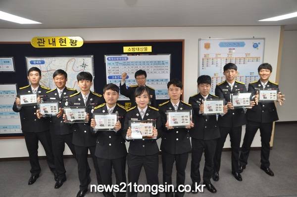 오승훈 동부소방서장은 이날 신임소방관들에게 관서실습 중에 실시한 훈련사진과 자신만의 신념을 새겨 넣은‘나만의 우표’를 깜짝 선물했다.