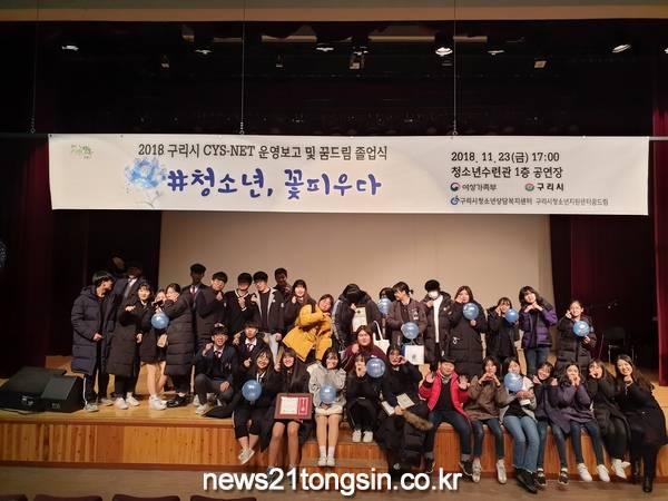 구리시소재 청소년상담복지센터에서는 지난 11월 23일 구리시 청소년수련관 1층 공연장에서 200여명의 청소년과 운영위원회 위원, 실행위원회 위원, 지역 사회 청소년 유관기관이 모인 가운데 한해를 돌아보는 지역 사회 통합 지원 체계(CYS-NET) 운영 보고 및 꿈드림 졸업식인 ‘청소년 꽃 피우다’ 행사를 개최했다.
