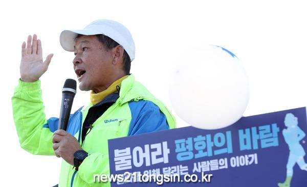 경기도가 지난 1일 임진각에서 한반도 평화와 통일을 기원하며 유라시아 대륙을 횡단한 평화마라토너 강명구(62·남) 씨 환영행사를 개최했다.