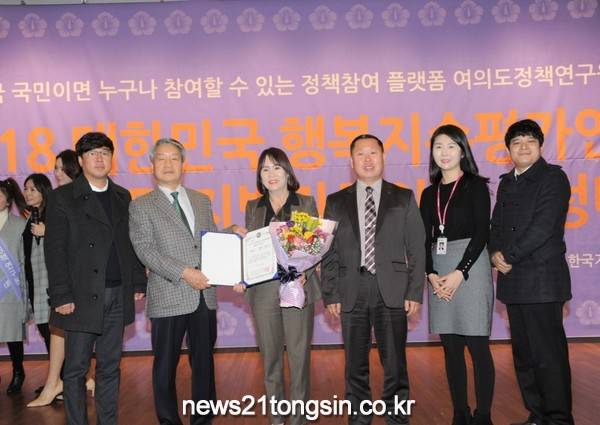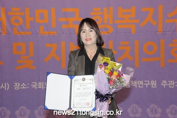 동두천시의회 정계숙의원이 5일 국회도서관 대강당에서 개최된 ‘2018 대한민국 지방자치단체 행복지수 의정평가에서 그 공로를 인정받아 2년 연속 의정부문 최우수 의정 대상을 수상하는 영예를 안았다