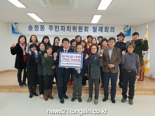 한편, 송정동주민자치위원회는 매년 어려운 청소년들을 위해 장학금을 기탁하는 등 다양한 분야에서 이웃사랑을 몸소 실천하고 있다.