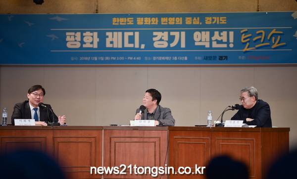 이 부지사와 이 전 장관은 11일 ‘한반도 평화와 번영의 중심, 경기도’를 주제로 1대1 대담의 형식으로 진행된 평화토론회에서 남북제재 국면에 아쉬움을 나타내며, 지자체와 시민사회가 남북교류에 앞장서야 한다고 의견을 모았다.